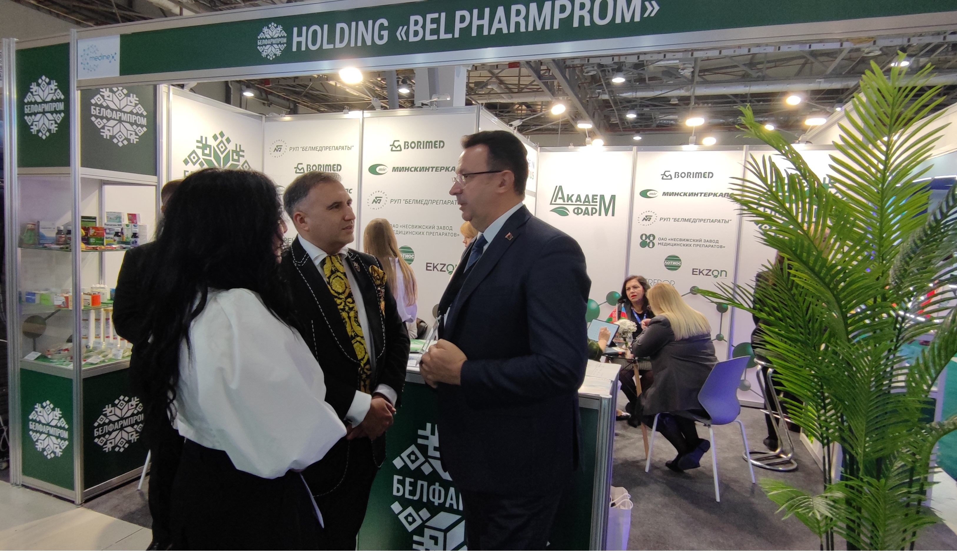 Рэспубліка Беларусь на выставе прадстаўлена 6 фармацэўтычнымі прадпрыемствамі ў рамках калектыўнага стэнда холдынгу «Белфармпрам».