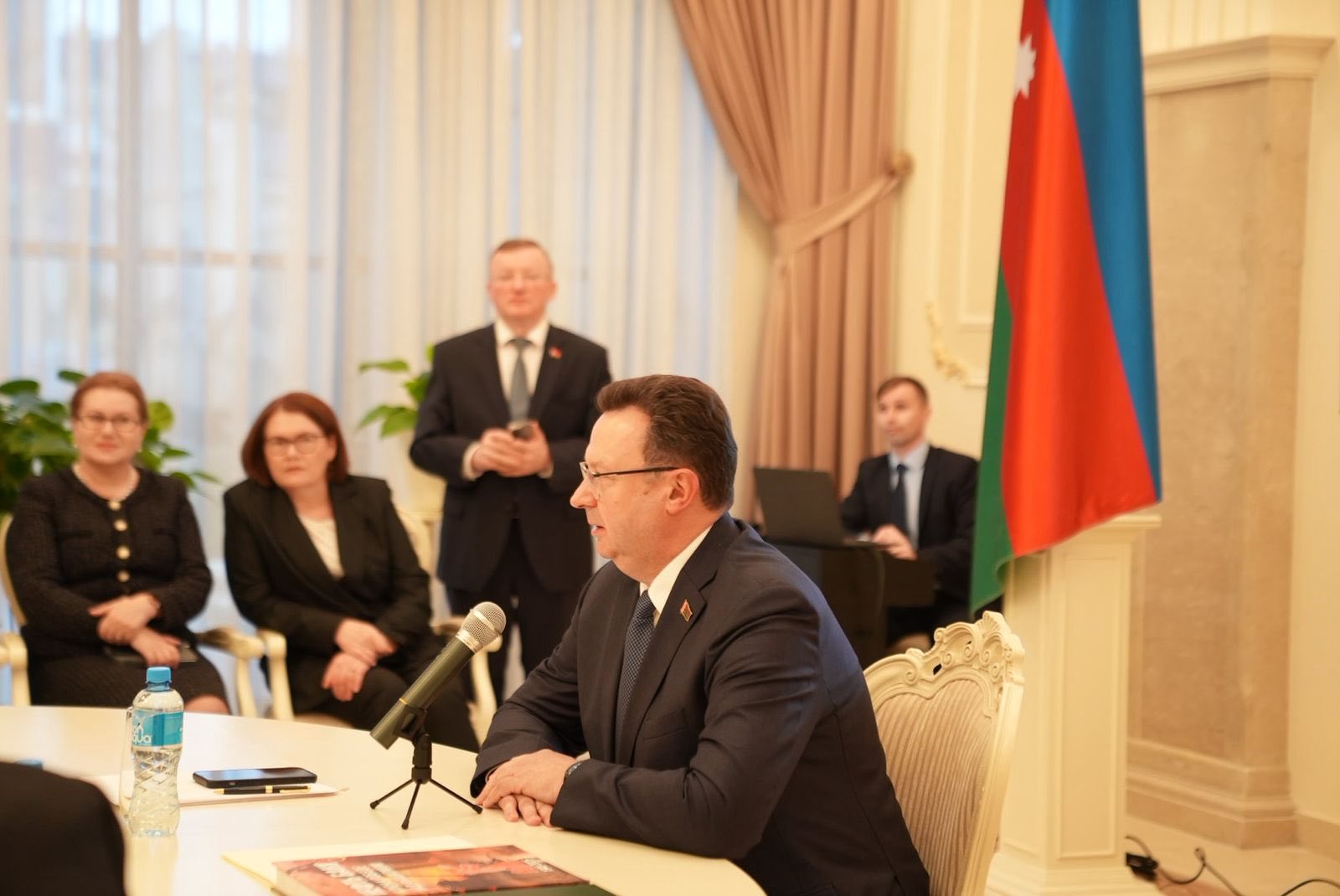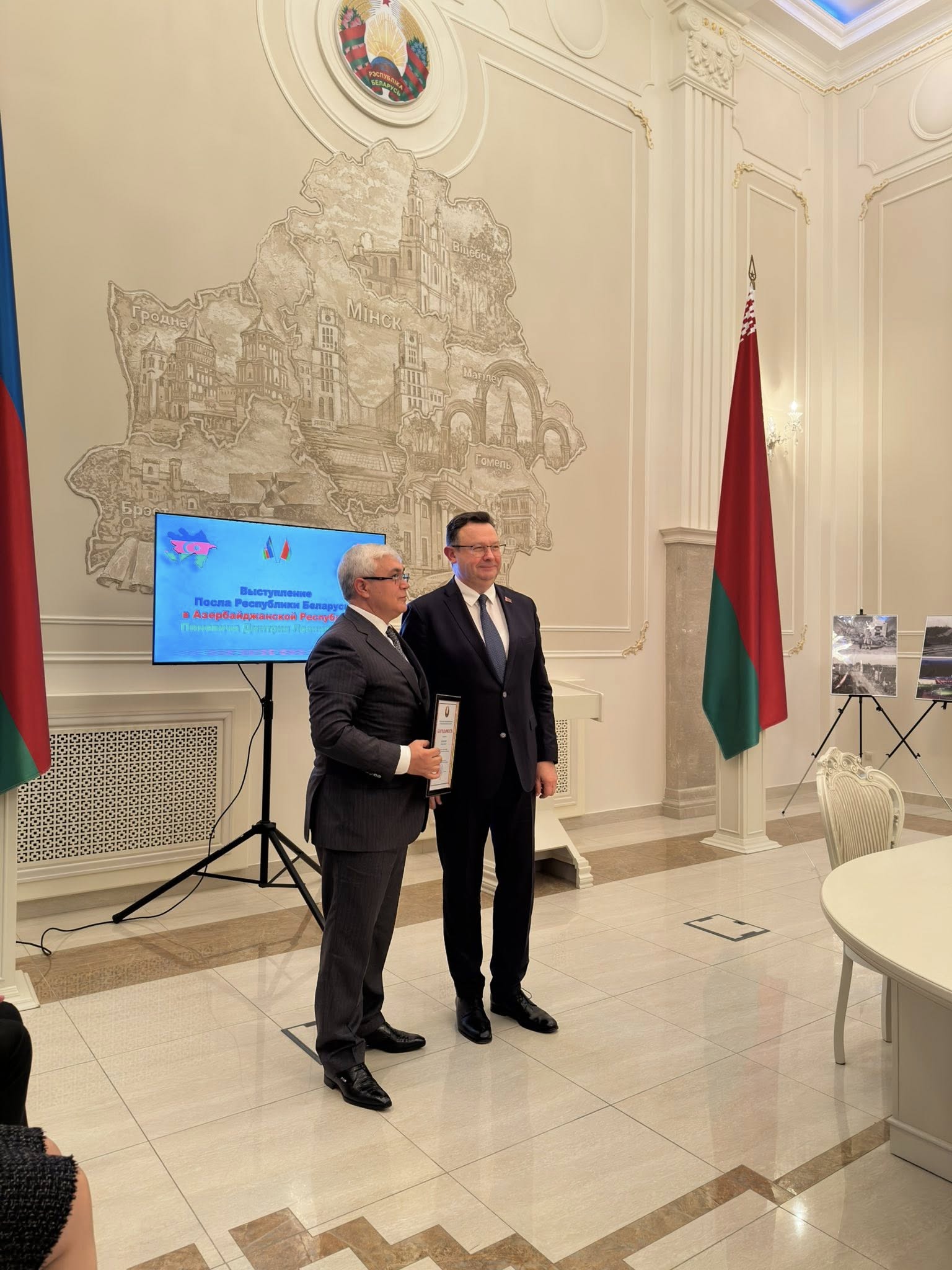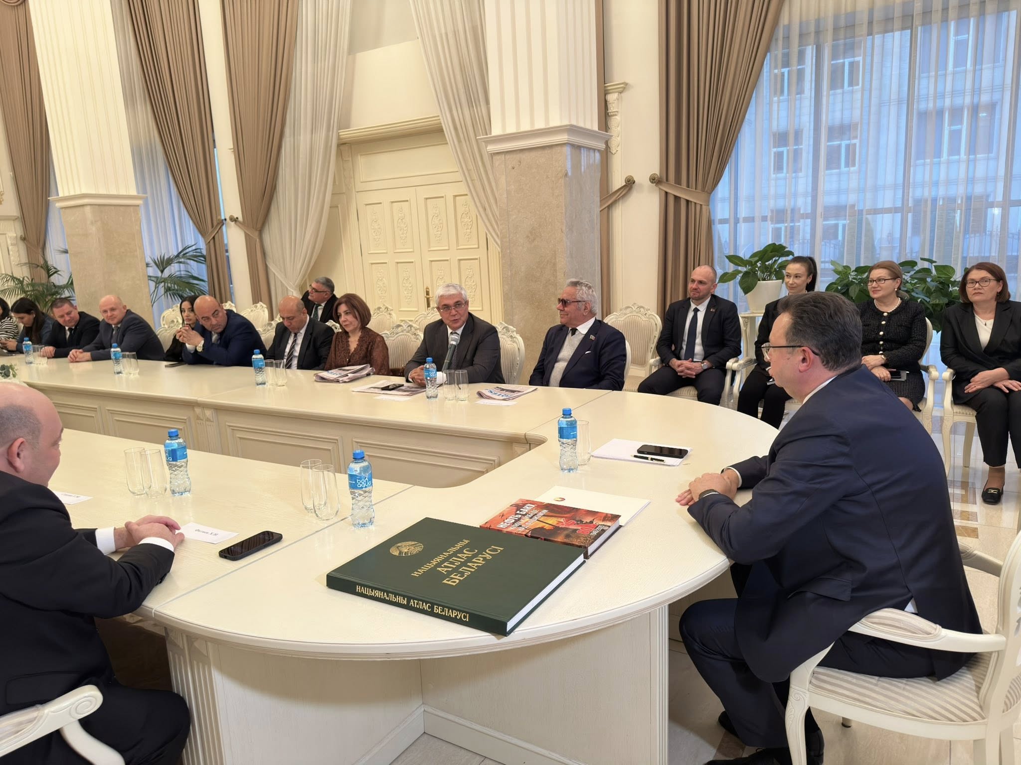 Посол презентовал для СМИ уникальное издание – Национальный атлас Беларуси. Академик З.Самедзаде представил свою фундаментальную книгу, изданную к 80-летию Победы в Великой Отечественной войне.